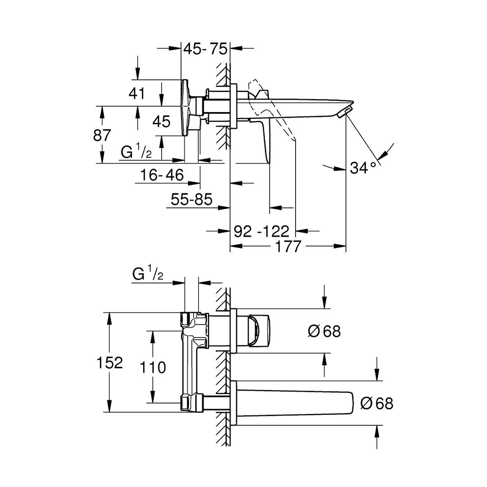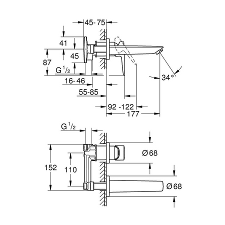 Grohe Bauedge baterija za umivaonik, 2 otvora 20474001