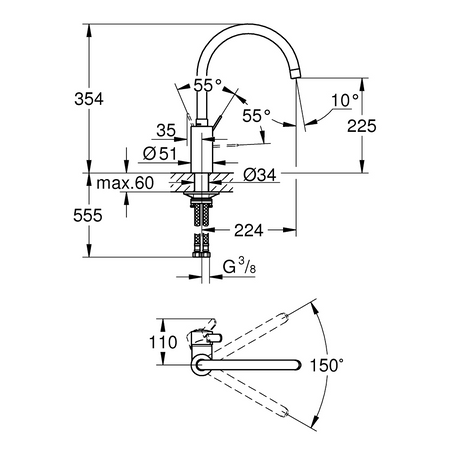 Grohe Eurosmart Cosmopolitan baterija za sudoperu 32843DC2