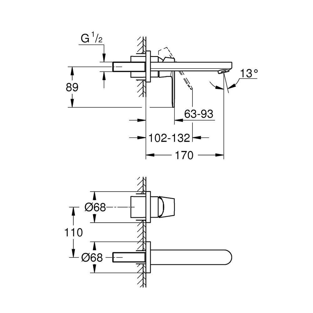 Grohe Eurosmart Cosmopolitan baterija za umivaonik, 2 otvora S-Size 19381000
