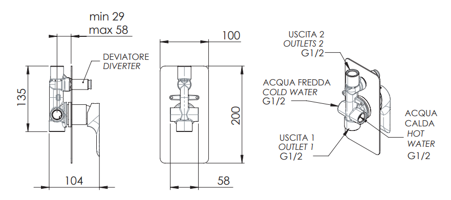 Remer Infinity ugradna baterija za kadu sa prebacivačem I09