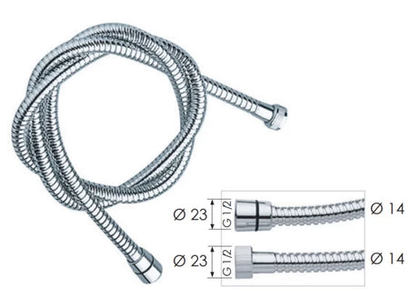 - Fleksibilno crevo za tuš od hromiranog mesinga Ø 14 FF, sa jednom konusnom maticom
