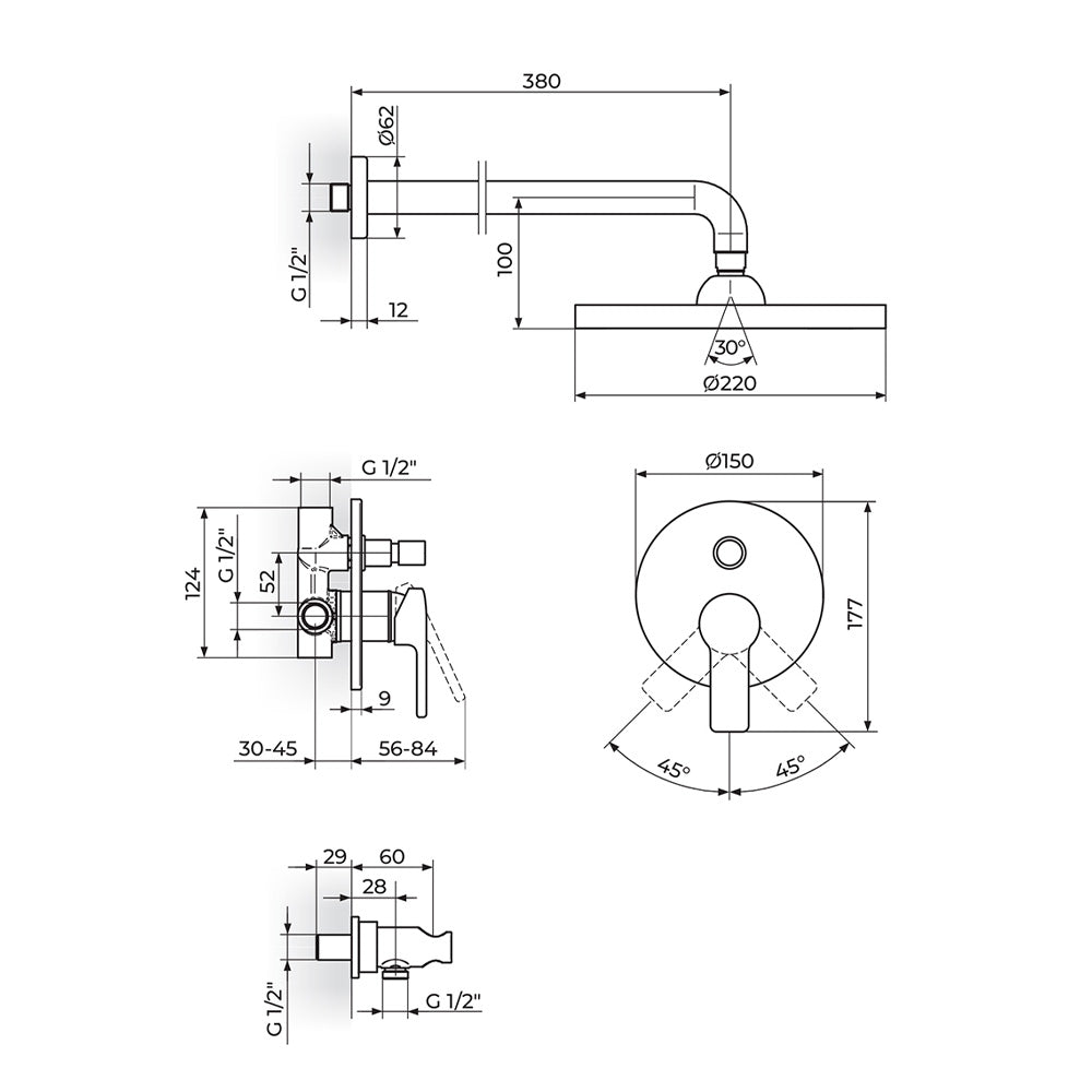 Rosan B/2 uzidna baterija za tuš kadu sa uzidnim i ručnim tušem JB31601