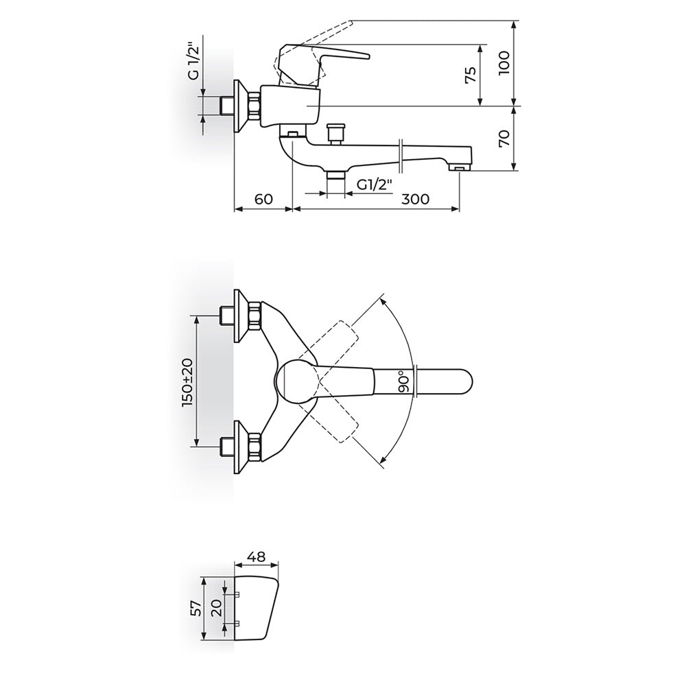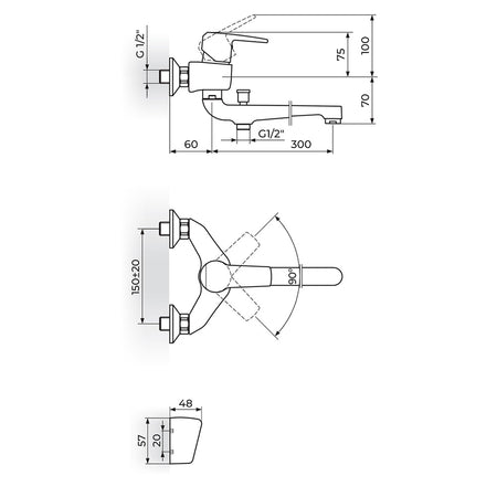 Rosan Cubo3 baterija za kadu – lavabo “Švedska” sa ručnim tušem JC34101