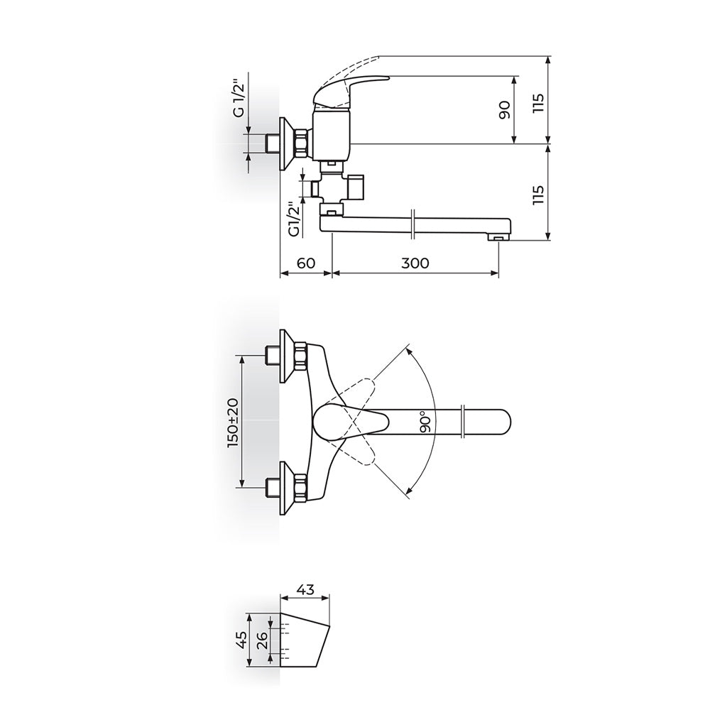 Rosan Perla baterija za kadu – lavabo “Švedska” sa ručnim tušem JP341001