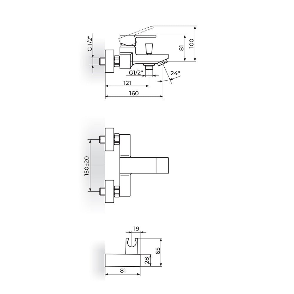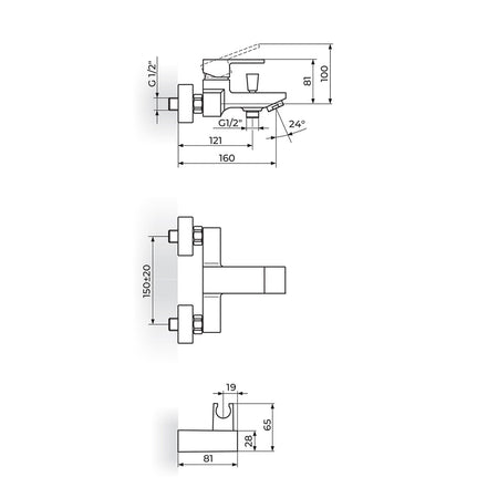 Rosan Quadro Black baterija za kadu sa ručnim tušem JQ33101B