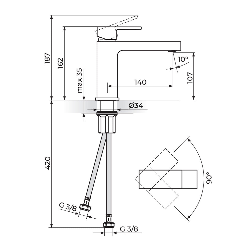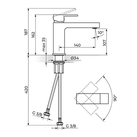 Rosan Quadro Black baterija za lavabo – M JQ30201B