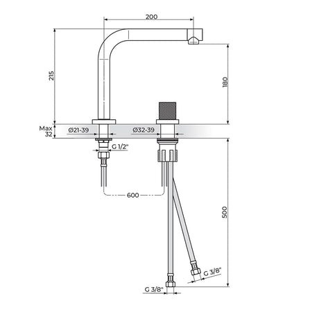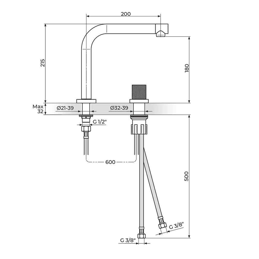 Rosan S2 Black&Gold baterija podgradna za lavabo jednoručna – visoka 230409BG