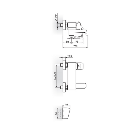 Rosan Stolz Black baterija za tuš kadu sa izlivom i ručnim tušom 137401B