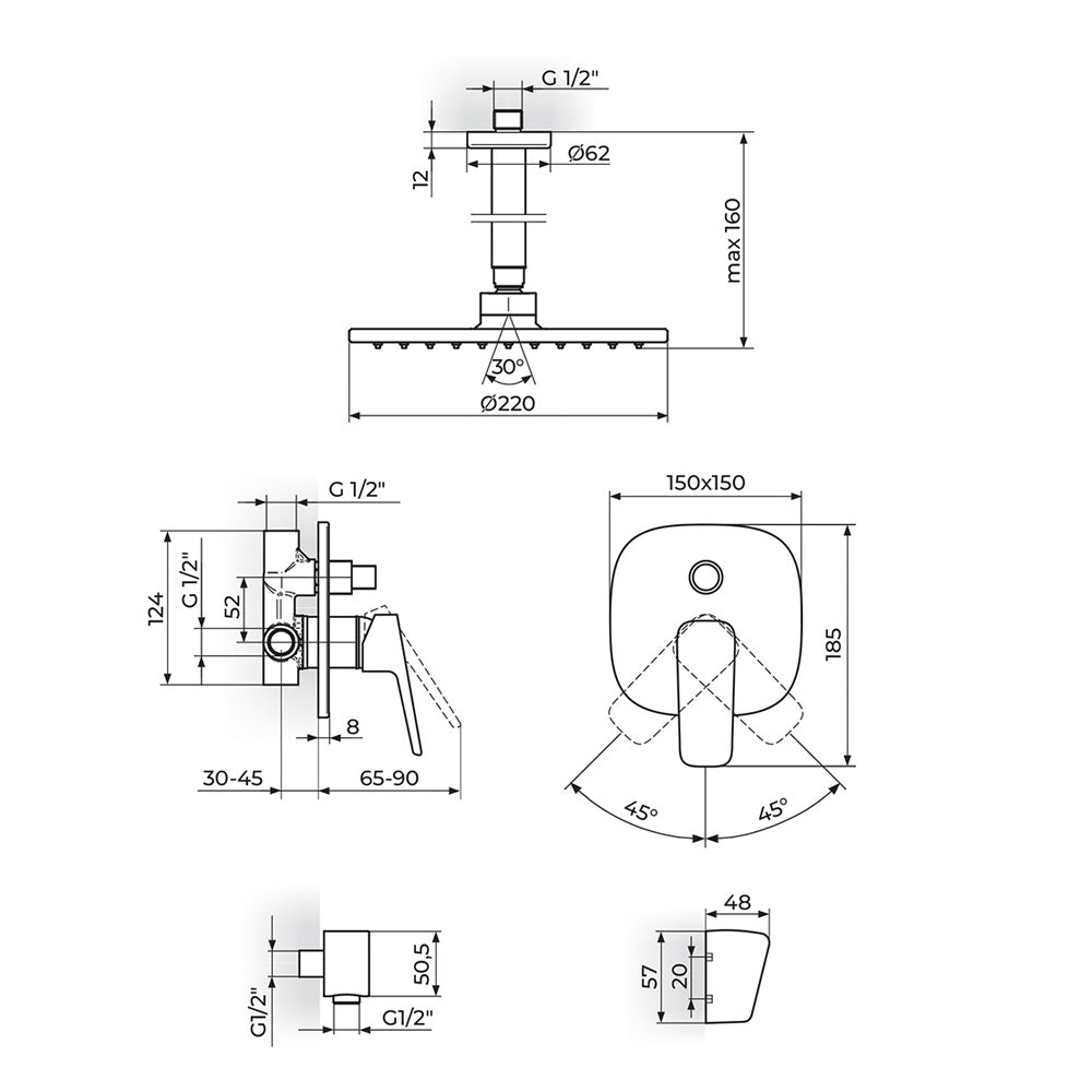 Rosan Stolz uzidna baterija sa plafonskim i ručnim tušem 131603