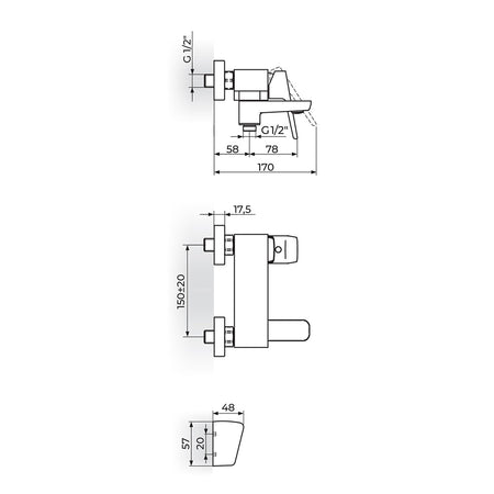Rosan Stolz White baterija za tuš kadu sa izlivom i ručnim tušem 137401W